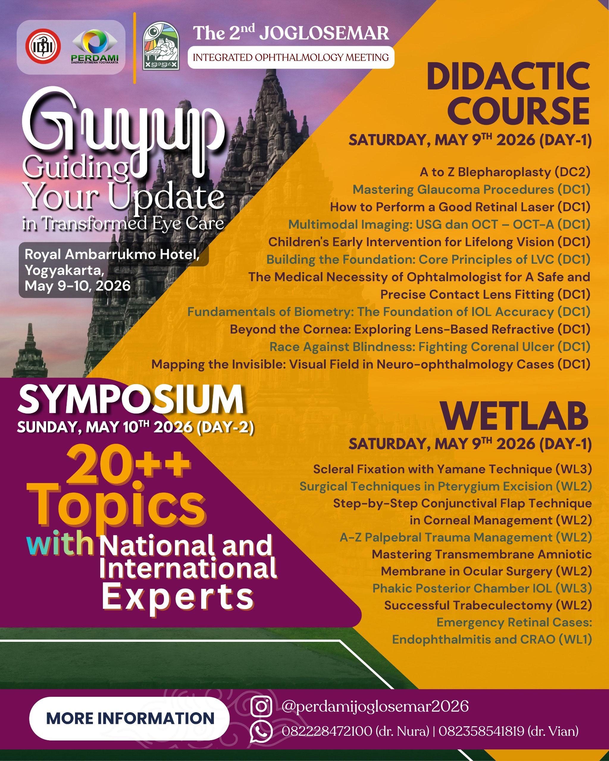 Presented and guided by speakers who are members of INAVRS, INOIIS, INASCRS, and IGS through material presentations and extensive discussion of cases and their management often encountered in daily practice.